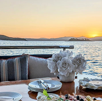 MY Aurora offers three spacious deck areas and a hydraulic swim platform perfect for entertaining, lounging and three dining areas that include two outdoor options that set the ideal stage for alfresco dining.
